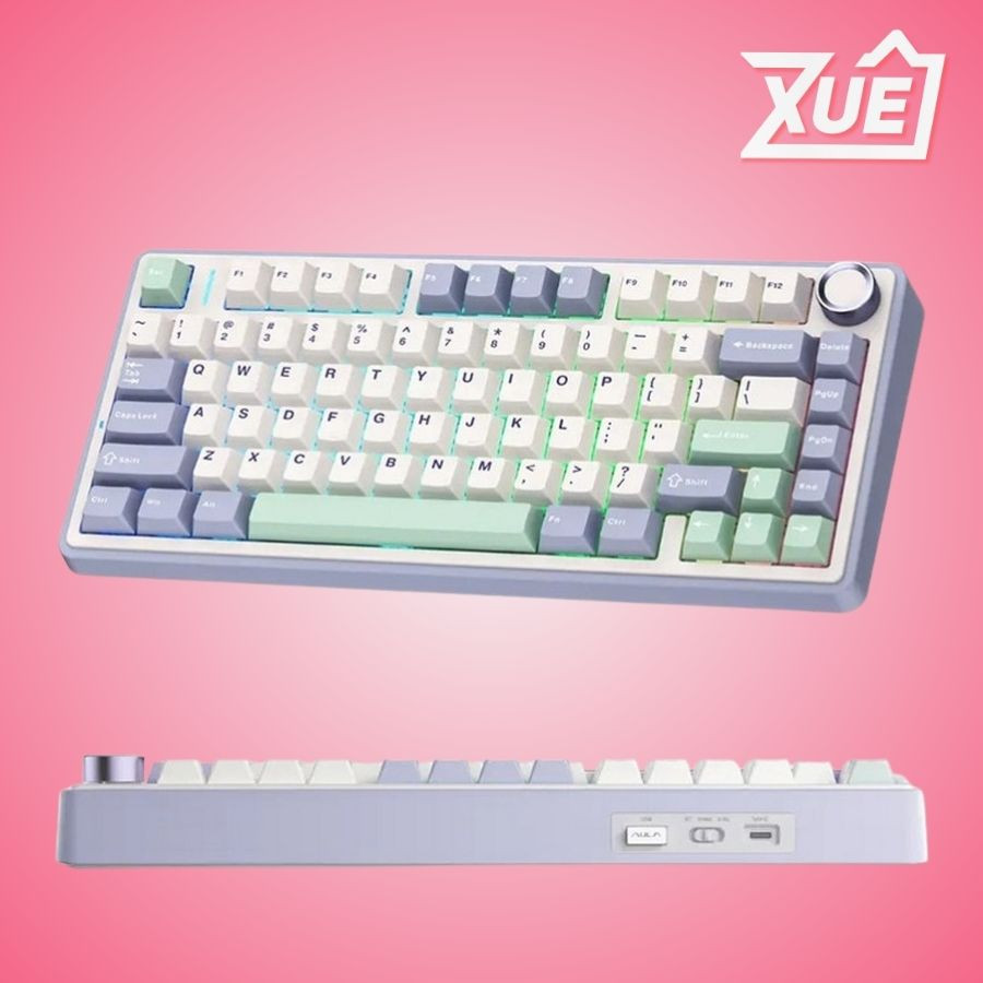 BÀN PHÍM CƠ AULA F75 3 MODE SNOW BLUE OUTEMU SILENT PEACH V3 SWITCH