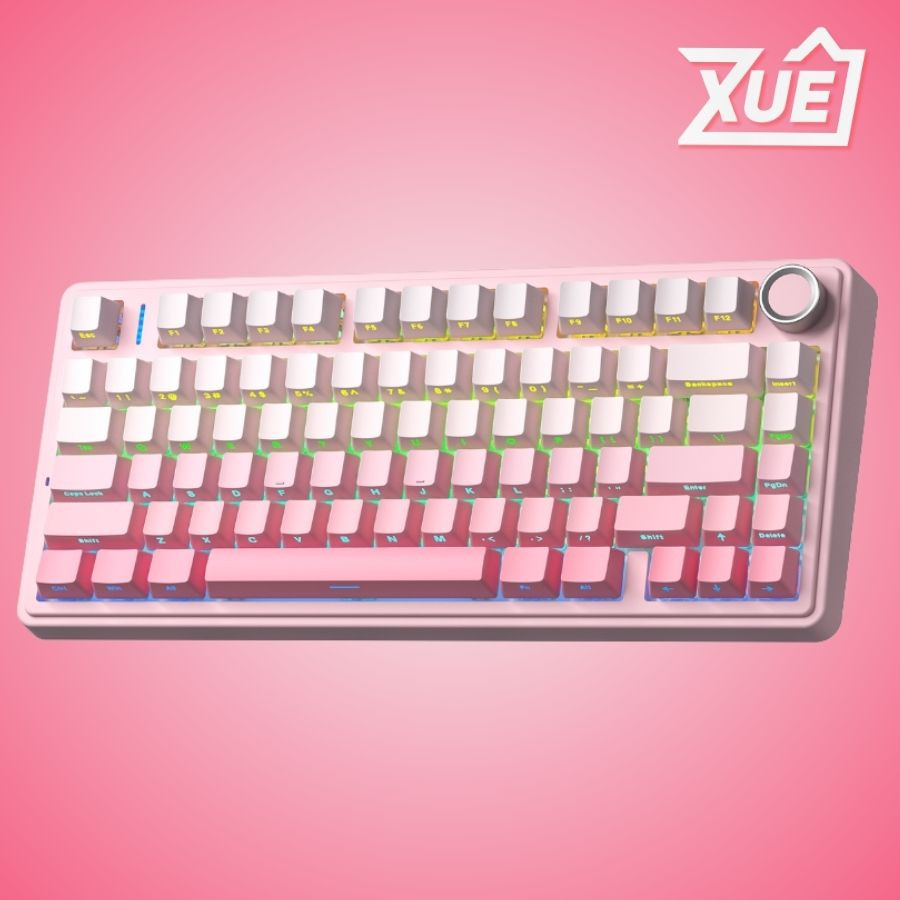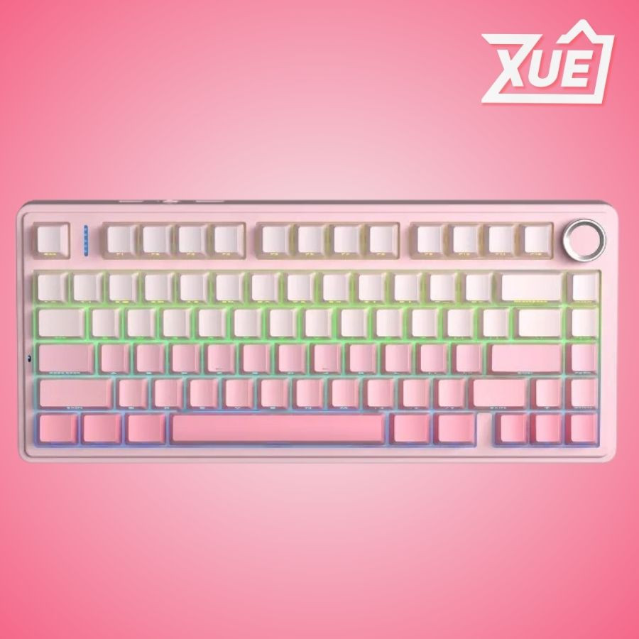 Bàn phím cơ AULA F75 Pink Gradient Dream Sakura switch AULA F75 BÀN PHÍM CƠ GAMING 3 MODE Độ bền: 60 triệu lần bấm Kết nối: 3 mode có dây Type-C & không dây 2.4G & BT Màu sắc: Hồng gradient Đèn nền: LED RGB 16,8 triệu màu Loại switch: Dream Sakura switch Hiệu ứng âm thanh khi gõ phím: Linear Hot-Swap 5 pin Gasket mount Núm xoay đa chức năng Mạch xuôi Số lượng phím: 80 Keycap PBT Double-Shot Điện áp/dòng sạc: DC 5V/ 700mA Điện áp định mức: DC 3.7V Dung lượng pin: 4000mAh Thời gian sử dụng sau khi sạc đầy pin: Khoảng 17.5H (hiệu ứng ánh sáng mặc định) Khoảng 266.5H (tắt tất cả đèn) Giao diện sạc: Type-C Kích thước bàn phím (L x W x H): 322.7 × 143.2 × 43.1 ± 0.5 mm Trọng lượng: 1023g (với cáp/bộ thu) Hệ điều hành tương thích: WINXP/WIN7/WIN8/WIN10 (Driver có thể được yêu cầu trên hệ thống Win 95 và Win98) Phụ kiện kèm theo: Sách hướng dẫn sử dụng + Dây USB type-C + Dụng cụ thay switch + (1-4) switch tặng kèm
