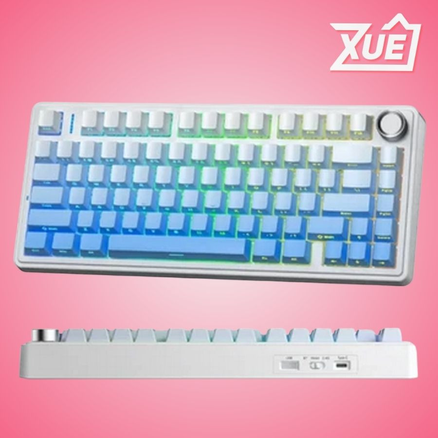 Độ bền: 60 triệu lần bấm Kết nối: 3 mode có dây Type-C & không dây 2.4G & BT Màu sắc: Trắng + xanh dương gradient Keycap PBT Double-Shot Đèn nền: LED RGB 16,8 triệu màu Loại switch: Reaper switch