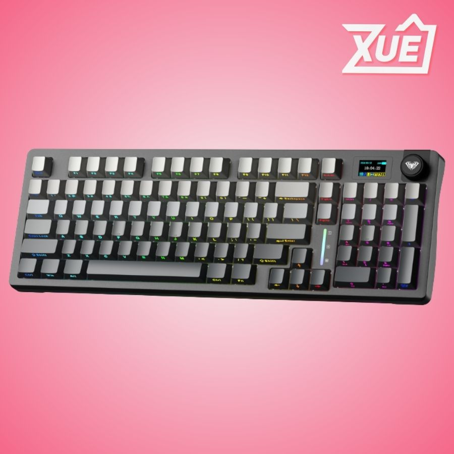 Bàn phím cơ AULA S98 Pro - 3 Mode Black Gradient Star Vector switch Bàn phím cơ gaming 3 mode AULA S98 Pro Độ bền phím: 60 triệu lần bấm Kết nối: 3 mode có dây Type-C & không dây 2.4G & BT Màu sắc: Xám + đen gradient Keycap PBT Double-Shot Đèn nền: LED RGB 19 hiệu ứng Loại switch: Star Vector switch Hiệu ứng âm thanh khi gõ phím: Linear Hot-swap 5 pin Gasket mount Núm xoay đa chức năng Màn hình LCD 1,14 inch hiển thị thông tin và hình ảnh Mạch xuôi Số lượng phím: 96 phím Hành trình phím: 4.0mm Điện áp/dòng sạc: DC 5V/ 1250mA Điện áp định mức: DC 3.7V (sạc đầy 4,2V) Dòng điện định mức: ≤245mA @ 3,7V (hiệu ứng ánh sáng mặc định) ; ≤75mA (tắt đèn nền và đèn bên) Dung lượng pin: Pin Li-ion có thể sạc lại 5000mAh Thời gian sử dụng khi sạc đầy pin: ≧ 20 giờ (hiệu ứng ánh sáng mặc định); ≧66.5 giờ (tắt đèn nền và đèn bên) Trọng lượng: Khoảng 866g (không bao gồm dây)/ 906g (bao gồm cả dây) Giao diện sạc: Type-C Kích thước (L x W x H): 406,6 × 137,9 × 45,1 ± 0,2mm Hệ điều hành tương thích: WIN XP7/8/10/Android/IOS/MAC Phụ kiện kèm theo: Sách hướng dẫn sử dụng + (1-4) Switch tặng kèm + Dây USB type-C + Dụng cụ thay keycap + Bộ chổi và khăn vệ sinh bàn phím