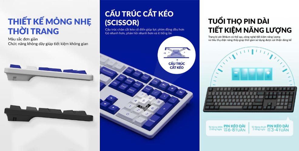 | Bàn phím - Đa thiết bị | Kết nối và chuyển đổi dễ dàng giữa nhiều thiết bị (thường 3-4 thiết bị qua 2.4G và Bluetooth) |
