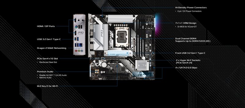 ASRock B760M PRO RS/D4 WIFI được trang bị chipset Intel B760, một phần của dòng chipset Intel 700 Series mới nhất. Chipset này mang đến hiệu suất ấn tượng và khả năng tương thích tốt với các vi xử lý Intel thế hệ 12 và 13, bao gồm các bộ vi xử lý Core i9, i7, i5 và i3. Với chipset B760, người dùng có thể tận hưởng hiệu suất xử lý mạnh mẽ và tính ổn định cao cho các tác vụ từ văn phòng đến chơi game.