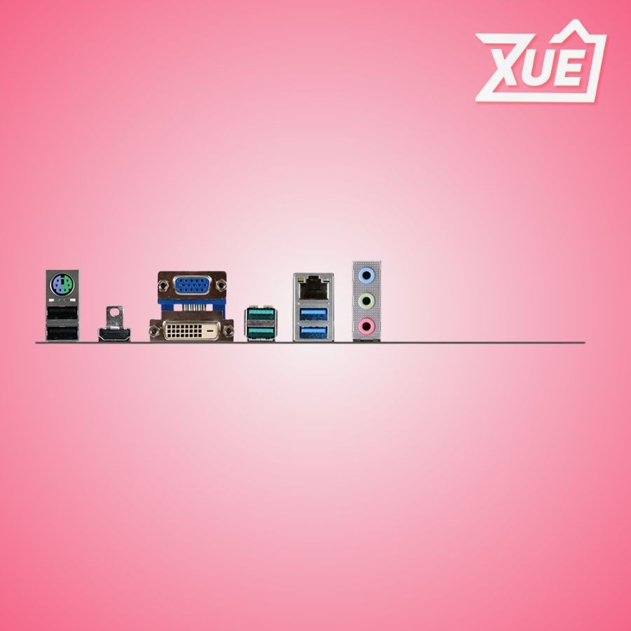| I/O BẢNG SAU | 1 cổng cắm kết hợp PS/2 1 X Cổng âm thanh (Đầu vào, Đầu ra, Đầu ra micrô) 1 cổng RJ-45 1 cổng HDMI 1 cổng DVI-D 1 cổng D-Sub (VGA) 4 X Cổng USB 3.2 Gen 1×1 Loại A 2 X cổng USB2.0 |