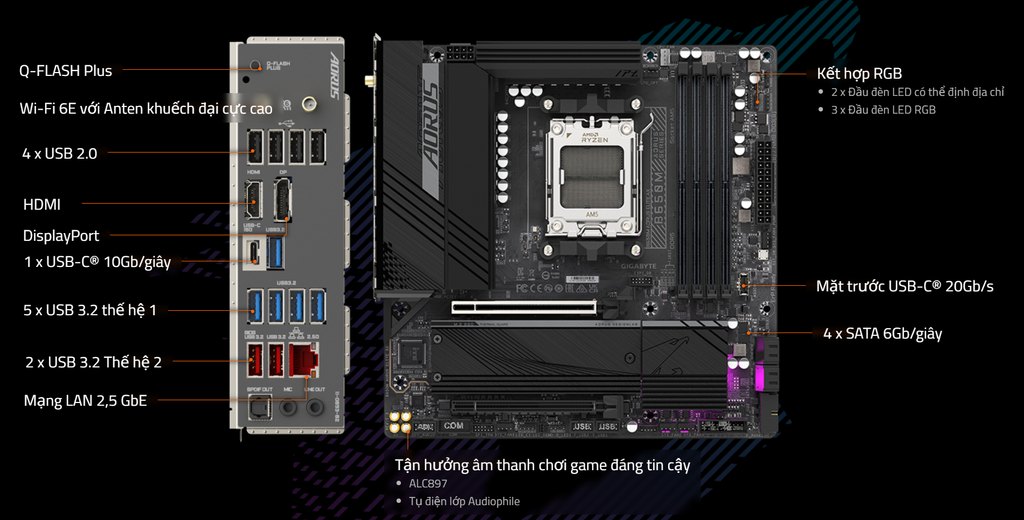 Tính năng đặc biệt | Q-Flash Plus, RGB FUSION 2.0, Smart Fan 6, Gigabyte Control Center |