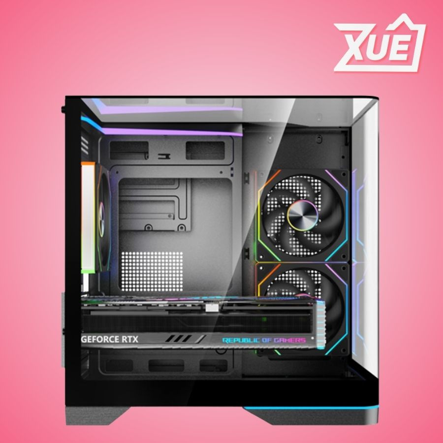 Thiết kế 3 mặt kính với kính cong liền khối 2 cạnh và phía trên nóc tinh tế, sang trọng khoe trọn nội thất bên trong. 02 Dải LED đồng bộ chuẩn ARGB trên và dưới tạo hiệu ứng thị giác cao cấp. Khả năng tiếp cận nhanh linh kiện bên trong mà không cần công cụ để mở kính. Vị trí lắp đặt Fan đa dạng tối ưu luồng gió Hỗ trợ Card đồ hoạ chiều dài tối đa lên đến 330mm. Trang bị bộ lưới lọc bụi tiện lợi sạch sẽ và thông thoáng. Vị trí đi dây và giấu nguồn tiện lợi cho khoe góc máy.
