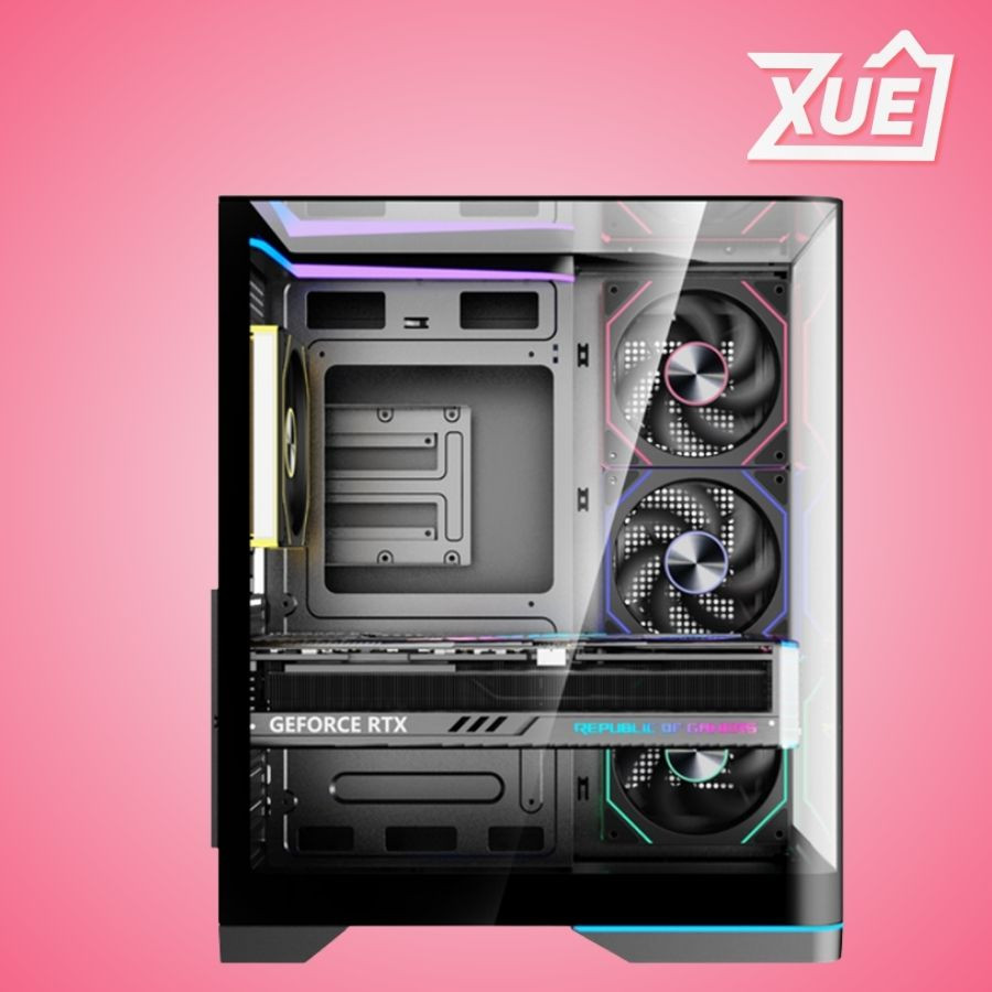 Thiết kế 3 mặt kính với kính cong liền khối 2 cạnh và phía trên nóc tinh tế, sang trọng khoe trọn nội thất bên trong. 02 Dải LED đồng bộ chuẩn ARGB trên và dưới tạo hiệu ứng thị giác cao cấp. Khả năng tiếp cận nhanh linh kiện bên trong mà không cần công cụ để mở kính. Vị trí lắp đặt Fan đa dạng tối ưu luồng gió Hỗ trợ Card đồ hoạ chiều dài tối đa lên đến 330mm. Trang bị bộ lưới lọc bụi tiện lợi sạch sẽ và thông thoáng. Vị trí đi dây và giấu nguồn tiện lợi cho khoe góc máy. Hỗ trợ tối đa 6 fan 120mm
