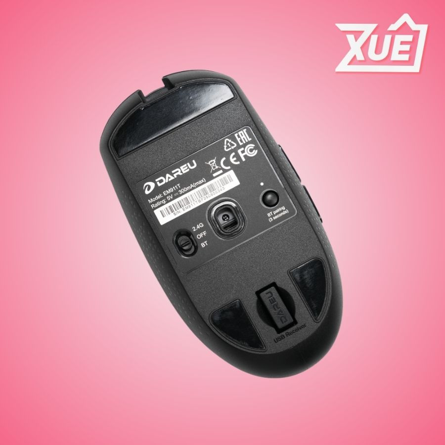 Chuột DareU EM911T Wireless Black Hỗ trợ 3 kết nối: Có dây + Wireless 2.4G + Bluetooth DPI tối đa 8000 (cần cài app) Cảm biến: PAW3104 Nút bấm: 50 triệu lần Gia tốc: 15G Polling rate 2.4Ghz và có dây: 1000Hz Pin 500mAh Trọng lượng 72 gram