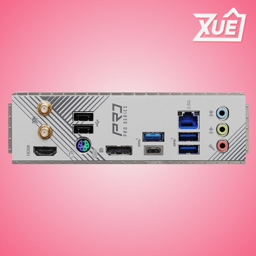Socket: LGA1700 hỗ trợ CPU Intel thế hệ thứ 12, 13 và 14 Kích thước: Micro ATX Khe cắm RAM: 4 khe (Tối đa 128GB) Khe cắm mở rộng: 2 x PCIe 4.0 x16 Slot, 1 x PCIe 4.0 x1 Slot Khe cắm ổ cứng: 2 x Hyper M.2 Socket, 4 x SATA3 6.0 Gb/s Connectors