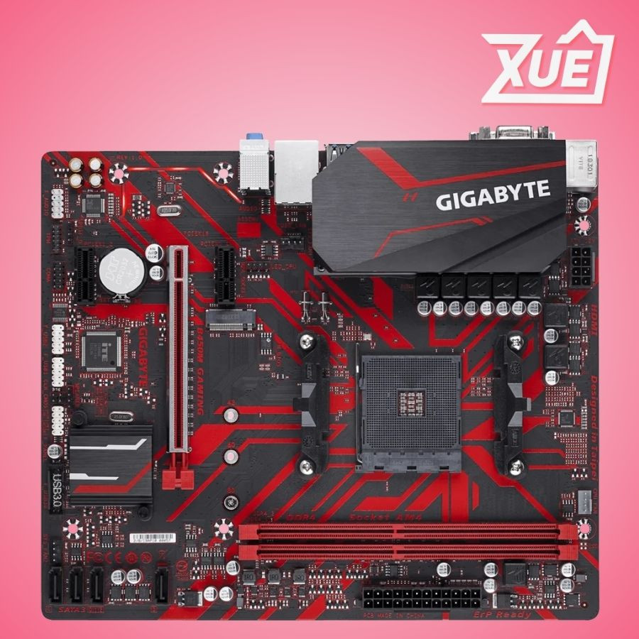 GIGABYTE B450M GAMING Socket: AM4 Cho CPU AMD Ryzen Kích thước: m-ATX Khe cắm RAM: 2 khe (Tối đa 32GB DDR4 2933/2667/2400/2133 MHz) Khe cắm mở rộng: 1 x PCI Express x16 slot, 2 x PCI Express x1 slot