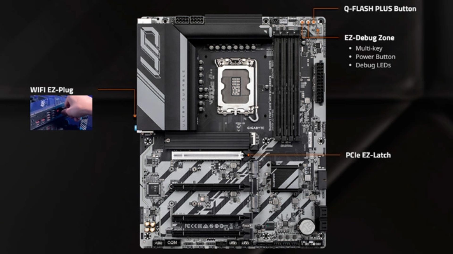 • Trang bị 4 khe DDR5, hỗ trợ dung lượng lớn và tốc độ OC cao.