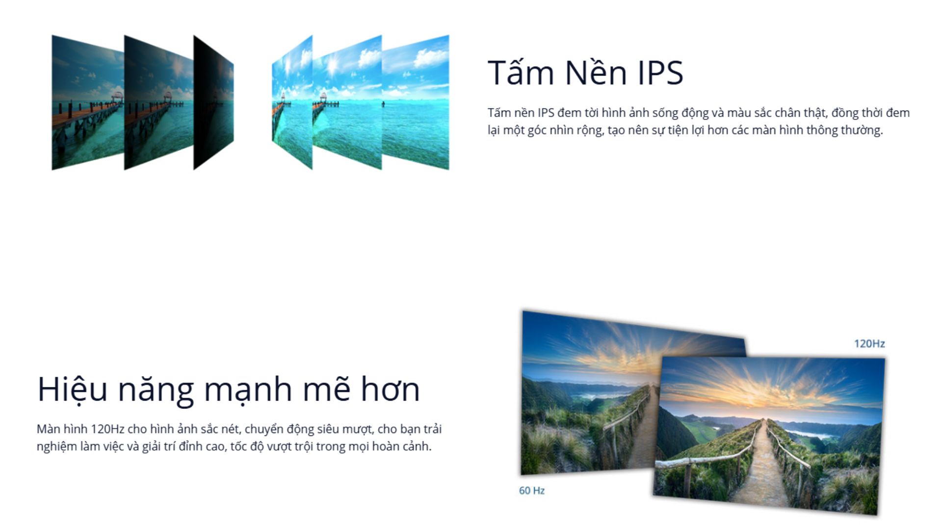 Tấm nền IPS cho màu sắc trung thực, góc nhìn rộng.