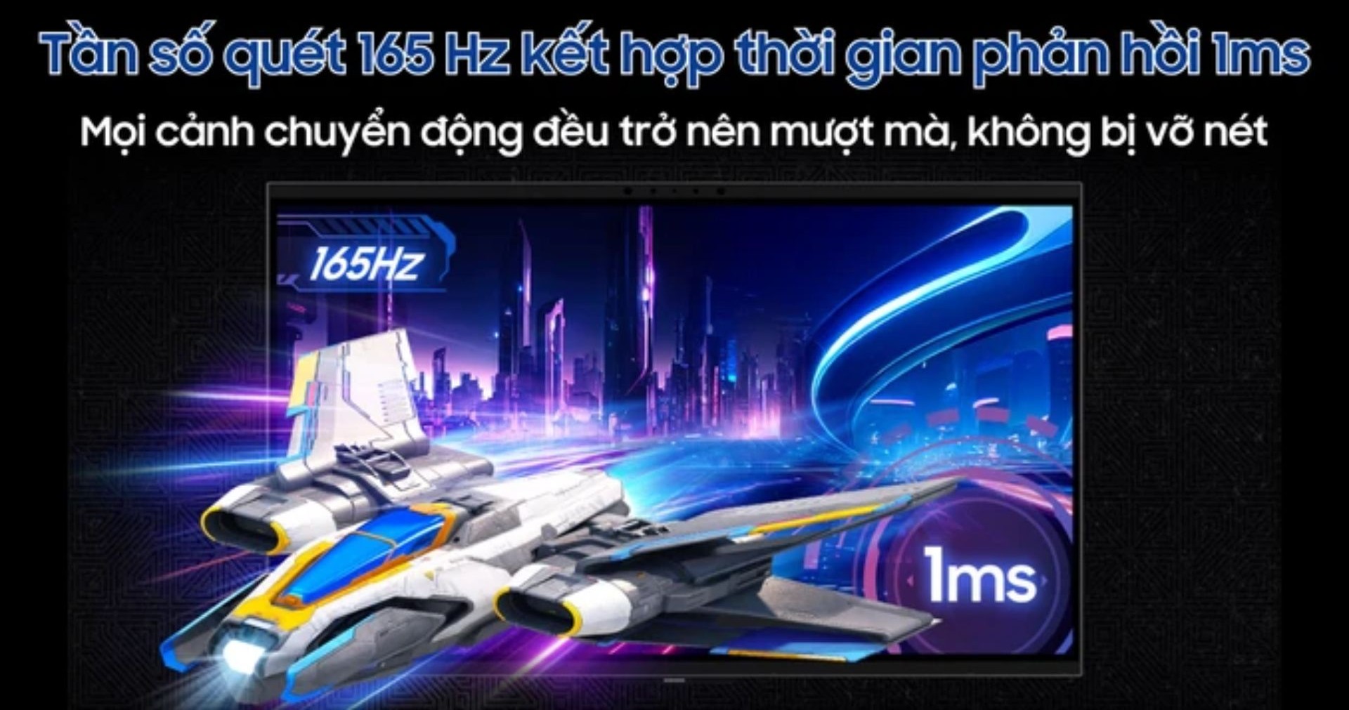 Tần số 165Hz + phản hồi 1ms giúp hiển thị mượt mà, giảm lag và xé hình khi chơi game.