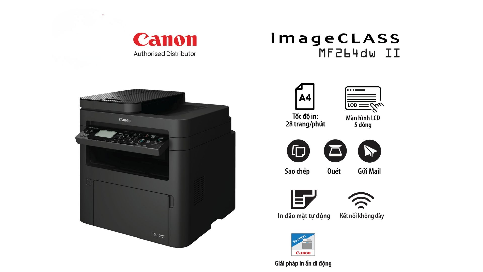Trong môi trường văn phòng nhỏ, nơi mà tính đa năng, độ bền và hiệu quả là điều cần thiết, Canon imageCLASS MF264dw II là lựa chọn lý tưởng. Máy in laser đen trắng này tích hợp các chức năng in đảo mặt (duplex), sao chép, quét, ADF, cùng kết nối USB / LAN / Wi-Fi — giúp đáp ứng đa dạng nhu cầu từ in ấn tài liệu, scan hợp đồng, đến sao chụp nhanh. Với tốc độ in khoảng 28–30 trang/phút và thiết kế gọn gàng, đây là sản phẩm phù hợp với các văn phòng, cửa hàng, hoặc cá nhân cần giải pháp in ấn ổn định và hiệu quả.