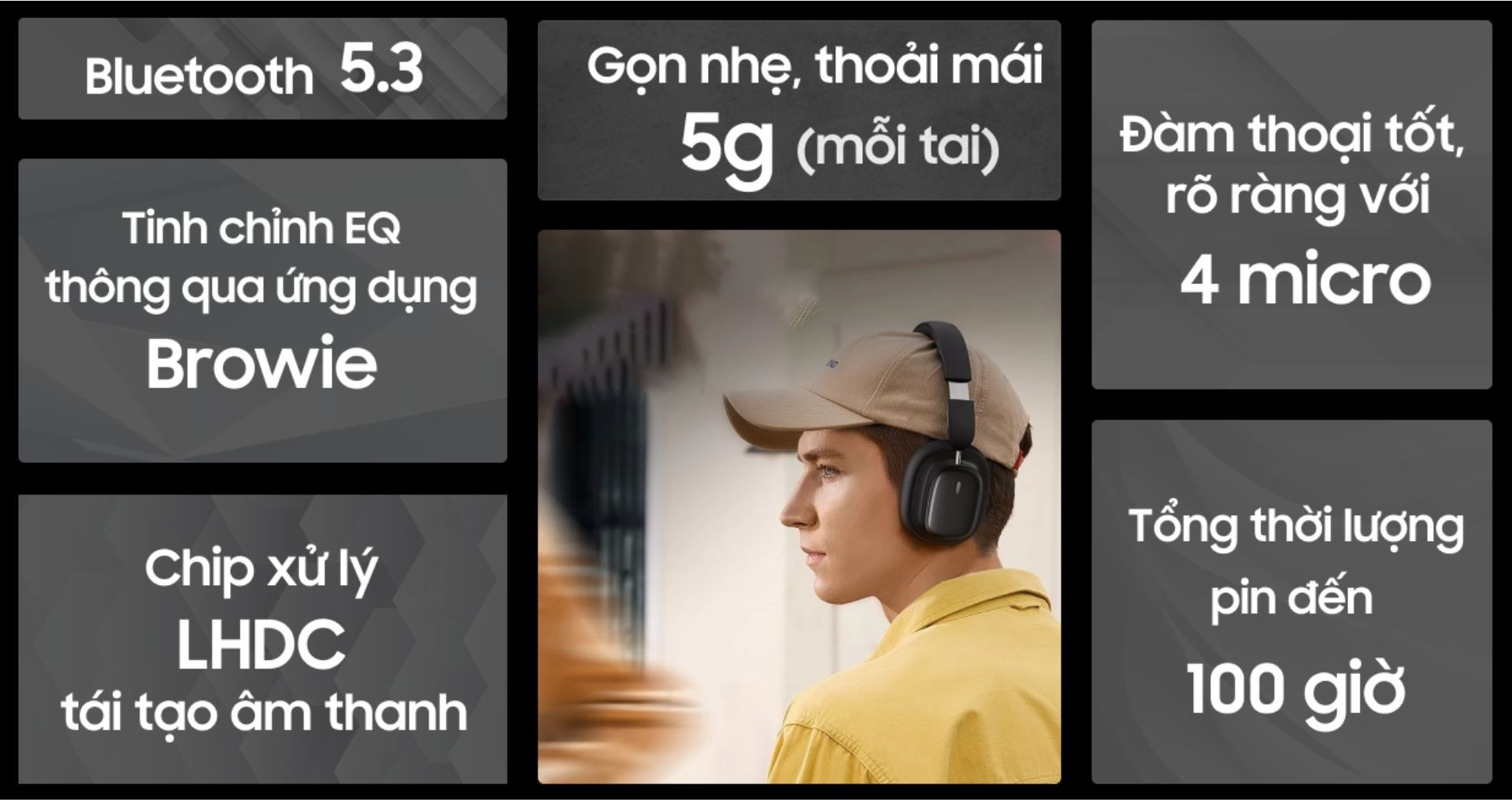 | Thời lượng pin | Khoảng 70 giờ (tẮT ANC) / 45 giờ (bật ANC) |
