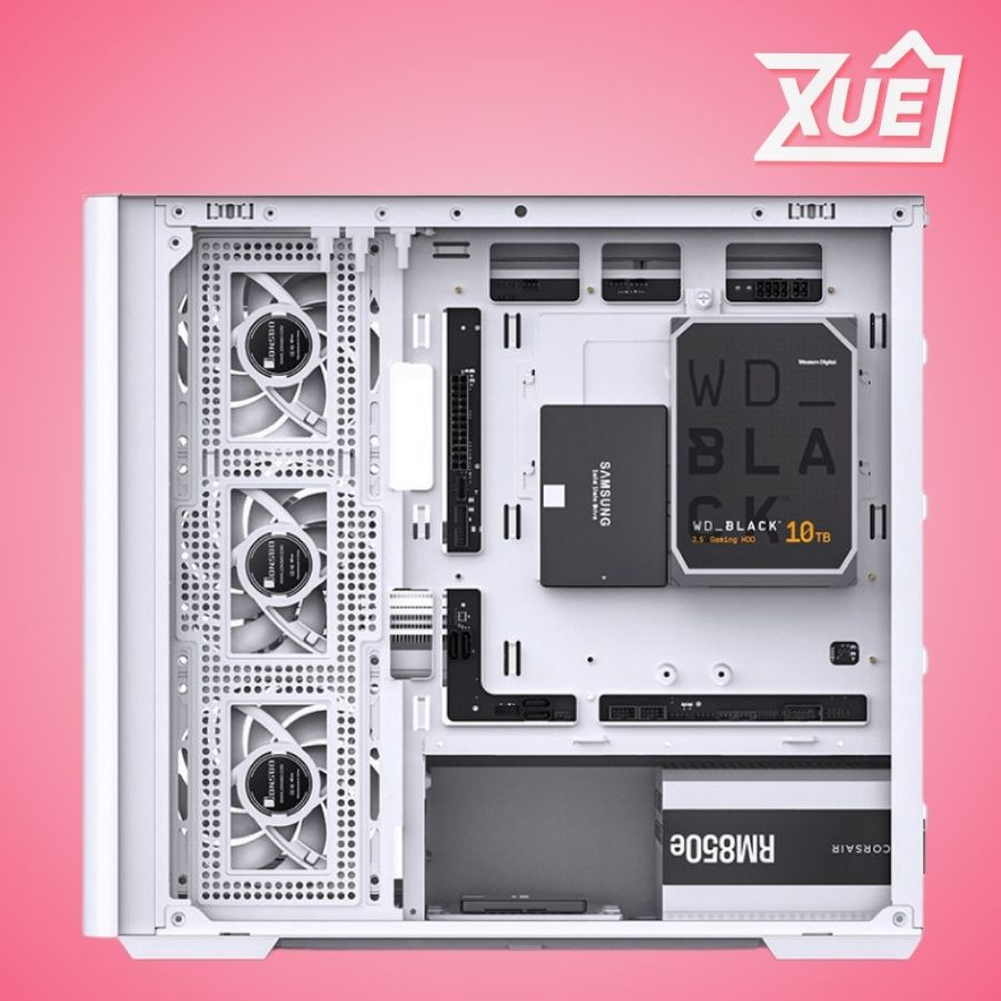 | Hệ thống làm mát | Lắp quạt tối đa: Phía trên: 3 x 120mm / 2 x 140mm. Phía sau: 1 x 120mm. Phía dưới: 3 x 120mm / 2 x 140mm. Hỗ trợ tản nhiệt nước: Phía trên: 360mm / 280mm. Phía dưới: 360mm / 280mm |